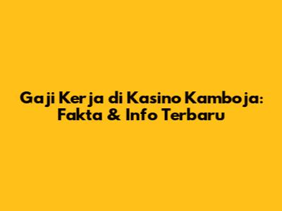 Gaji Kerja Di Kasino Kamboja: Fakta & Info Terbaru